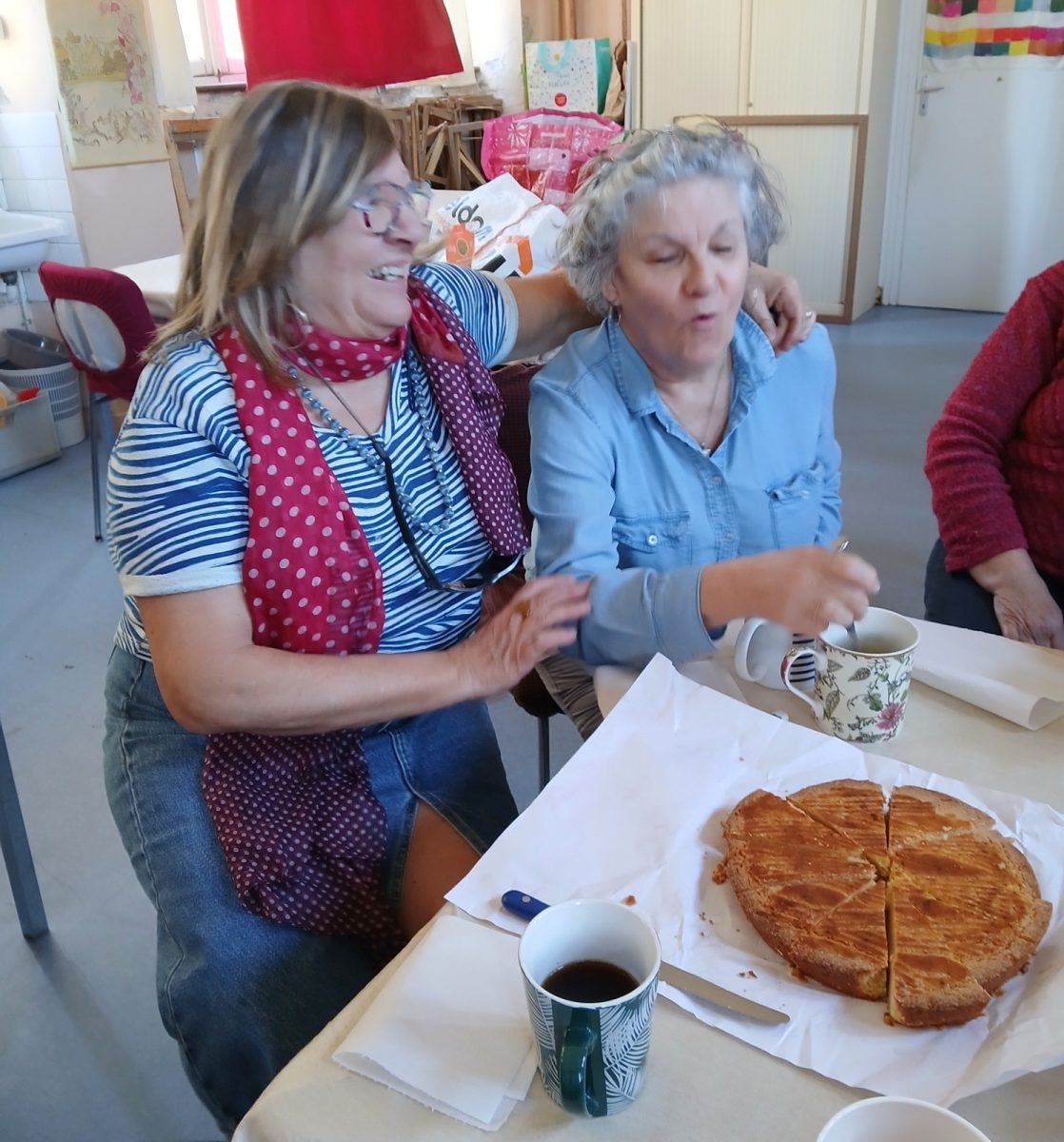 Pause café pour l’anniversaire de Marie Anne.