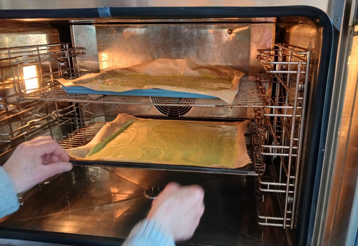 Préparation du biscuit, sous la surveillance du Chef Jean Yves !