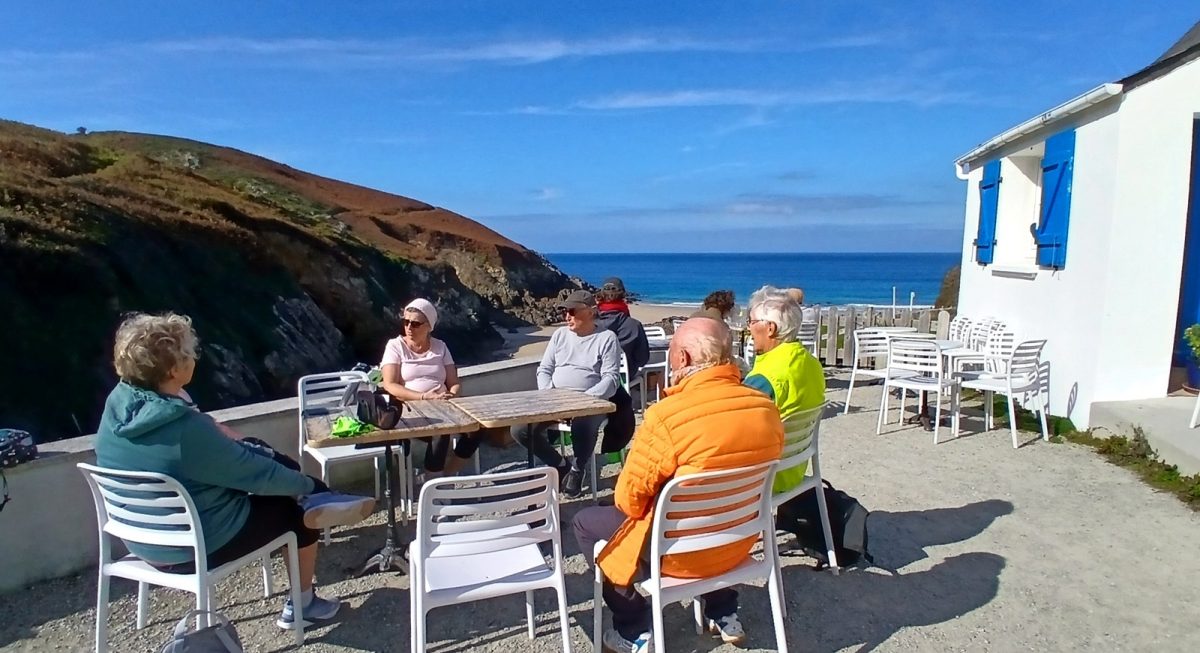 10 octobre – Temps ensoleillé, c est à 7 cyclos que nous nous dirigeons vers Poullan, Beuzec, la réserve du Goulien et la pause pique-nique se fera au ravissant petit port de Pors Théolen. Endroit magnifique ! et au moment de repartir la buvette du « Bout du monde du Finistère » s’ouvre… trop contents les cyclos ont pu prendre leur petit café.