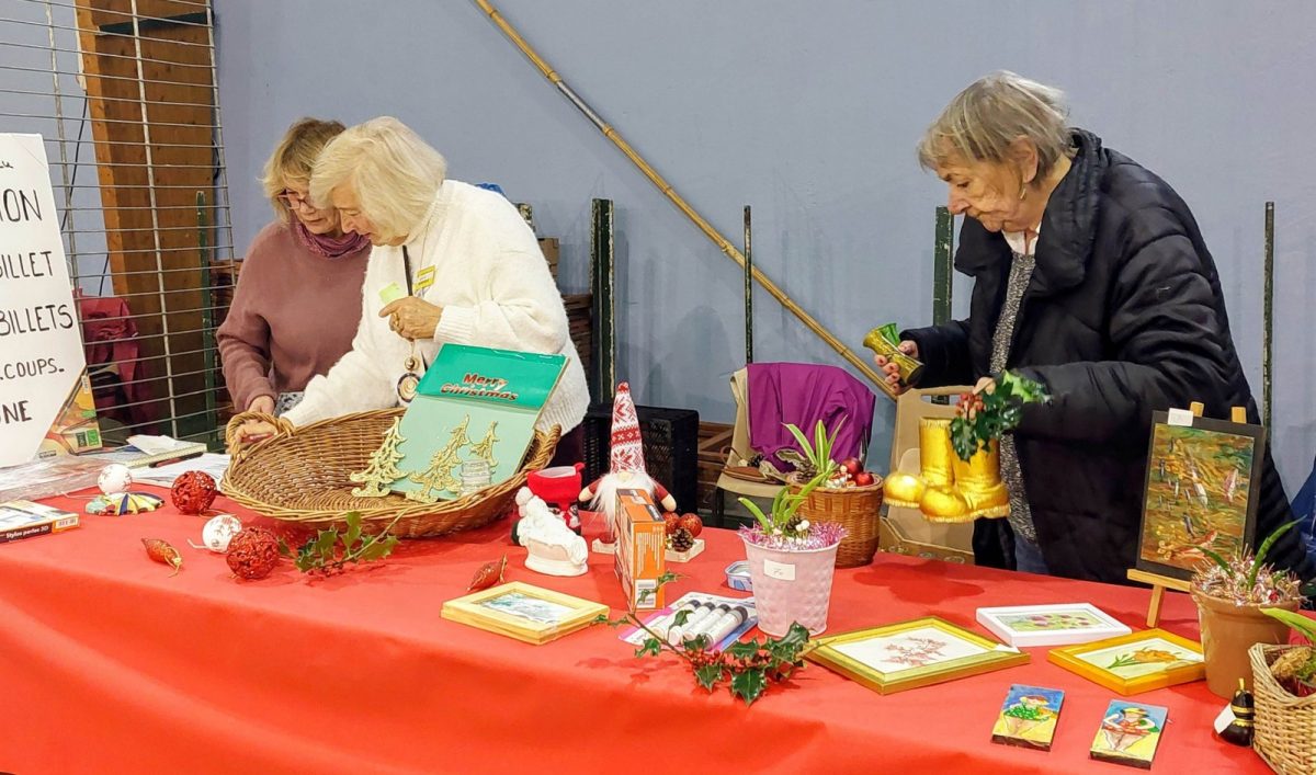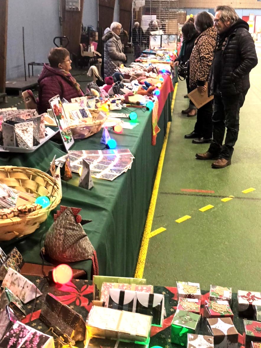 Avec près de 30 mètres linéaires d’exposition & vente, les activités « Petits papiers Création », « Peinture sur toile et ardoise », « Peinture sur soie et tout support », « Couture » et « Tricot » ont proposé des centaines de réalisations orientées sur les décorations et cadeaux pour les fêtes de Noël.